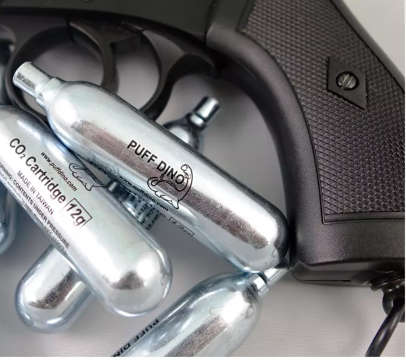 - PUFF DINO CO2 Cartridge, suitable for Co2 powered airsoft BB gun.